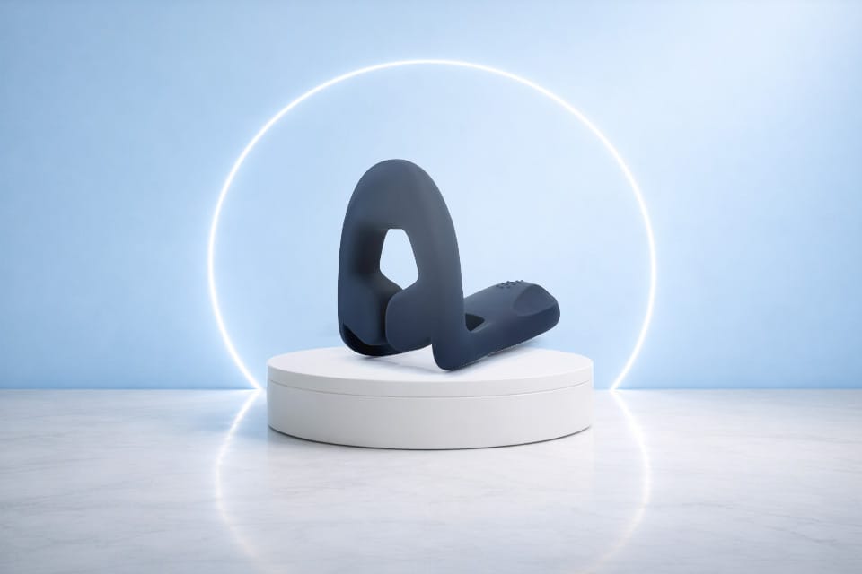 It’s a vibrator designed for both partners. It gives stronger, longer-lasting erections AND simultaneously stimulates the penis, perineum, and vulva giving you both more powerful orgasms.