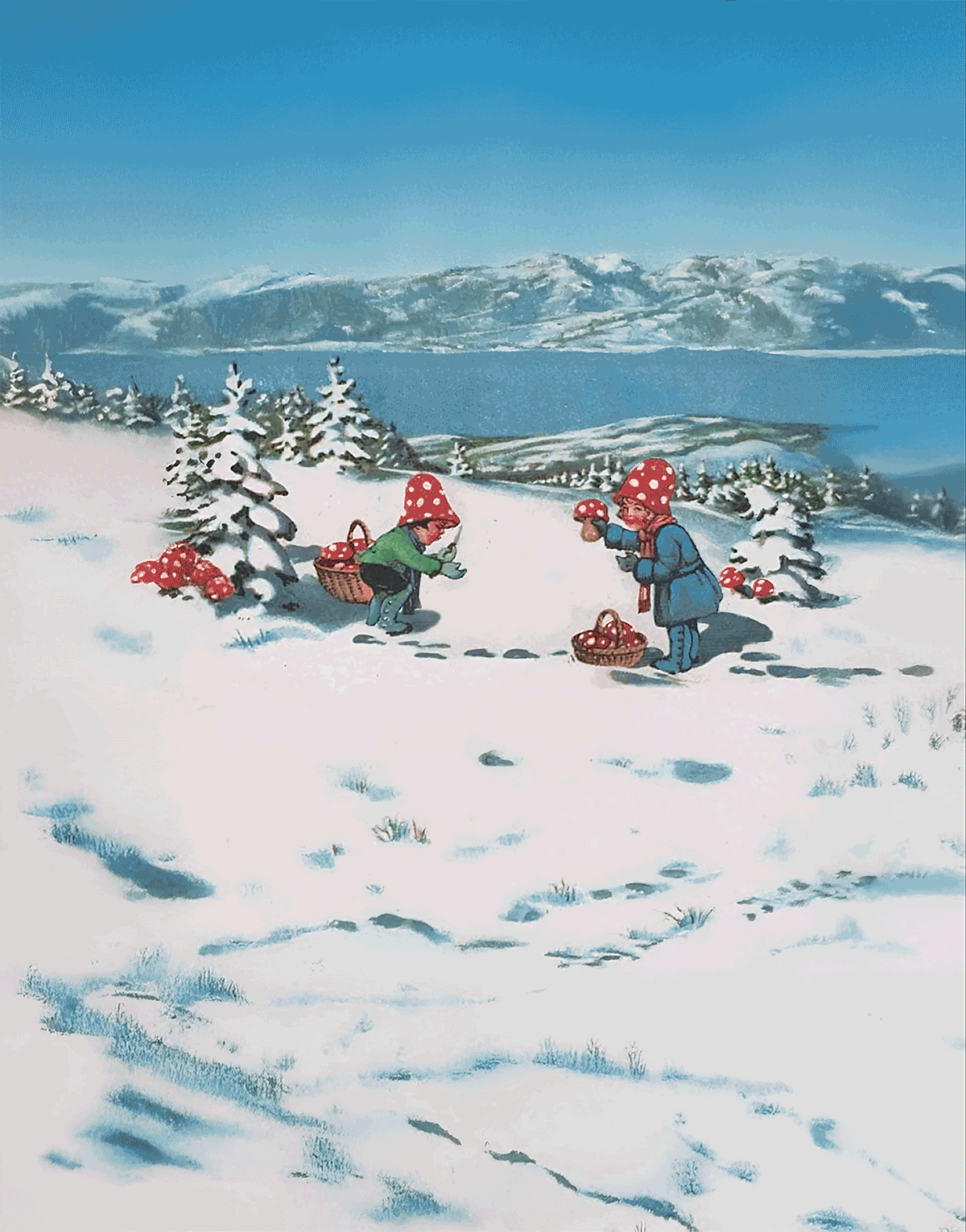 The name is inspired by nordic lore dating back hundreds of years. It is said that shamans would pick Amanita Muscaria near evergreen trees and deliver them through chimneys when snow blocked the doors. The red suit, the evergreen trees, the flying reindeer — it all may trace back to this iconic mushroom.