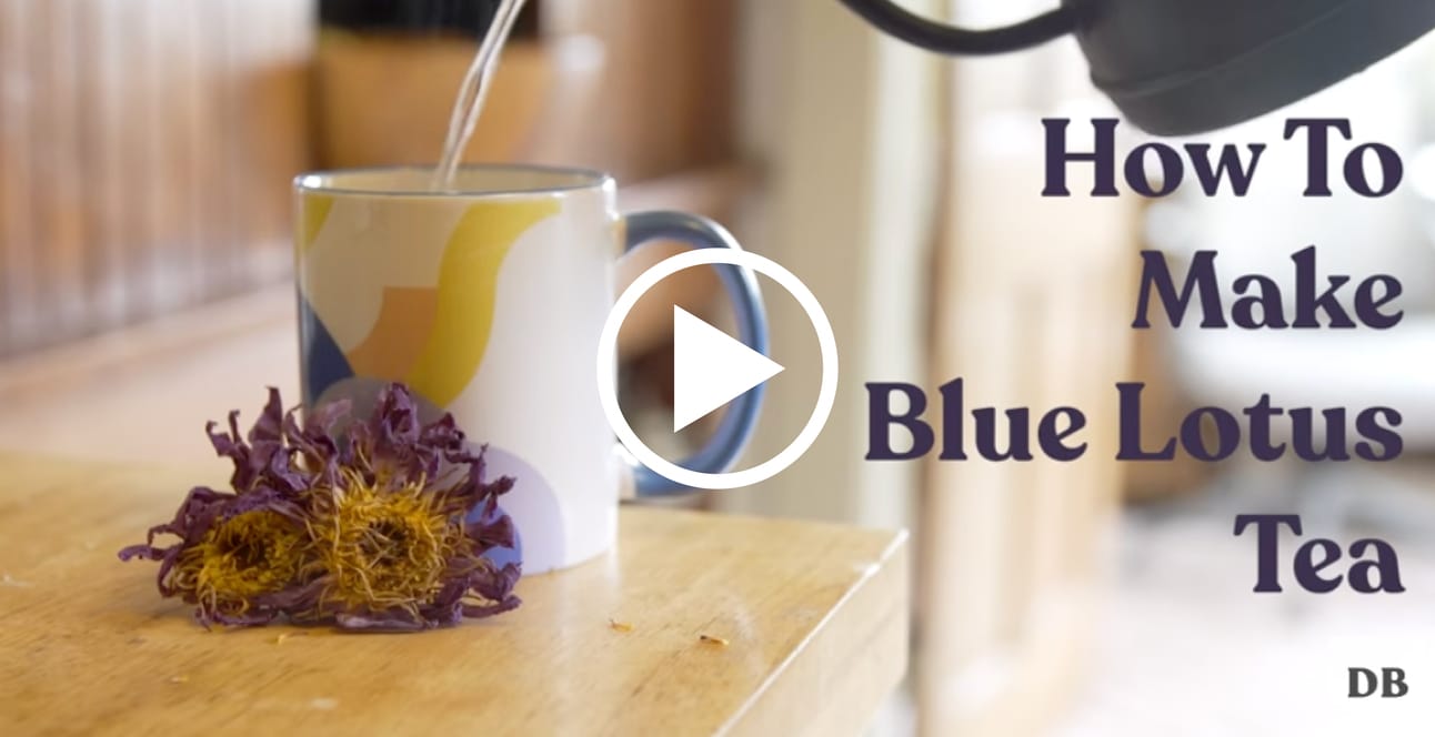 Sipping blue lotus tea is one of the most common ways to experience this dreamy flower. Steeping a cup before bed or meditation can relax the mind and body while opening up consciousness and sensory capacity. To make tea, you can add 1 to 2 teaspoons of dried blue lotus flowers to a cup of hot water and let it steep for 5 to 10 minutes. Placing a lid over your tea while it steeps will ensure you recapture any active components that may evaporate in the steam. You can also add honey or lemon to taste.