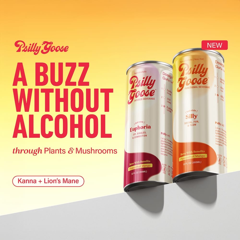 Psilly Goose is party without poison- a social, plant-powered buzz built around kanna and lion’s mane, with zero added sugar and only 40 calories. You can have fun and keep the momentum. It’s a win win.